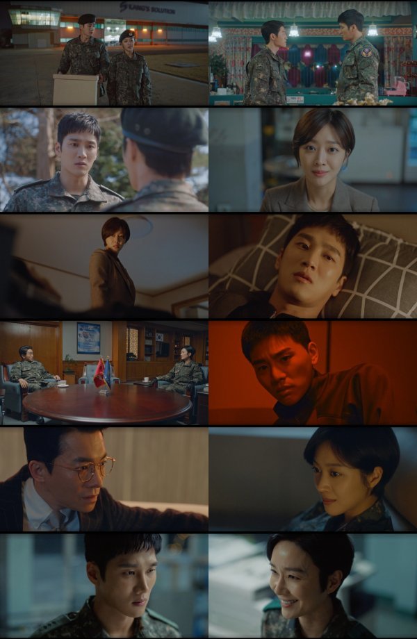 그 가운데 노화영과 홍무섭 사이에서는 팽팽한 긴장감이 형성되었다. 두 사람은 20년 전에 발생했던 도배만 부모님의 죽음에 대해 얘기를 꺼내며 서로를 옥죄기 시작했고, 아직 밝혀지지 않은 그 사건에 대한 진실이 무엇인지 궁금증을 증폭시켰다. 특히 노화영이 도배만의 부모님을 죽이고 그 아들을 구했다는 것과 그 아들이 도배만이라는 것을 알아내면서 이후 그녀가 어떤 행보를 보일지 귀추가 주목됐다. 무엇보다 엔딩은 충격 그 자체였다. GOP 소대 생활을 하고 있는 노태남(김우석 분)이 취침 시간에 우연히 눈을 뜨게 되면서 목격하게 된 광경에 두려움을 느끼는 눈빛이 포착된 그 시각, IM 디펜스 집무실에서 대치하게 된 차우인과 용문구, 그리고 법무실에서 마주한 도배만과 노화영의 대면이 연달아 보여진 것. 한층 더 피 말리는 긴장감을 자아낼 군검사즈와 빌런들의 격전을 예고해 11회를 향한 기대감은 최고조에 달하고 있다.