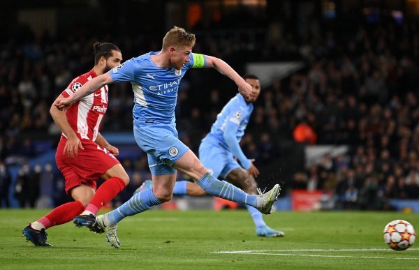맨체스터 시티 케빈 더 브라위너가 6일(한국시간) 챔피언스리그 8강 1차전에서 아틀레티코 마드리드를 상대로 선제 결승골을 넣고 있다. 사진=게티이미지코리아.