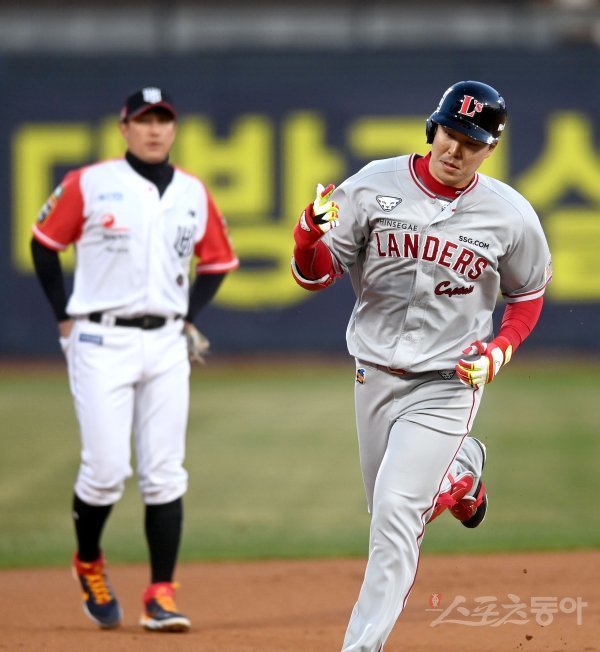 6일 수원KT위즈파크에서 ‘2022 신한은행 MY CAR KBO리그’ SSG 랜더스와 KT 위즈의 경기가 열렸다. 1회초 1사 1,2루 SSG 한유섬이 우월 스리런 홈런을 날리고 그라운드를 돌며 세리머니를 하고 있다.