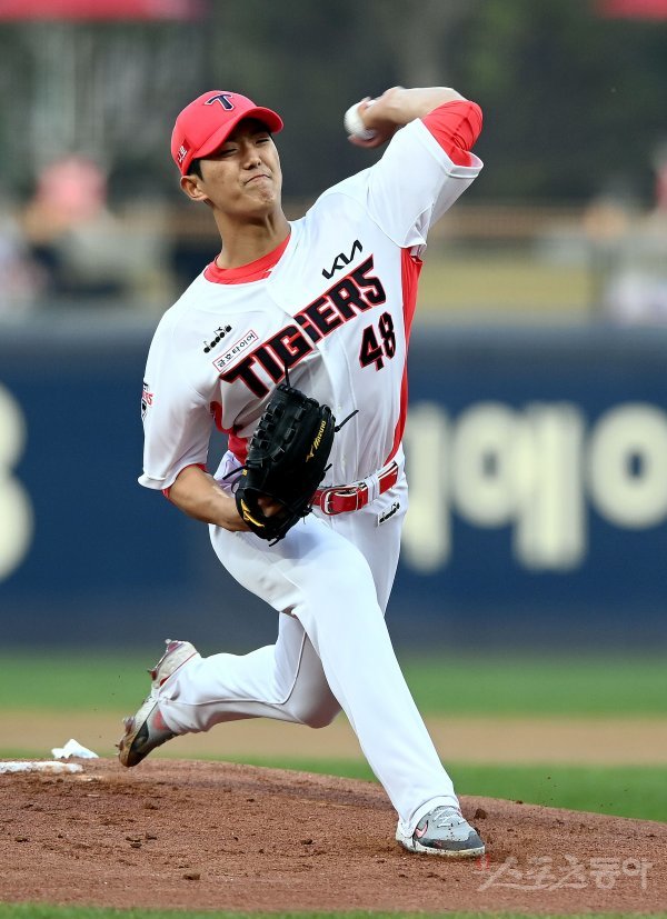 6일 광주기아챔피언스필드에서 ‘2022 신한은행 SOL KBO리그’ KIA 타이거즈와 한화 이글스의 경기가 열렸다. KIA 선발투수 이의리가 힘차게 볼을 던지고 있다.
