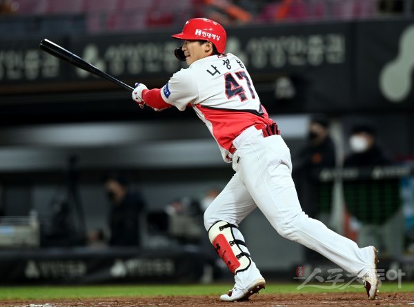 KIA 타이거즈 나성범은 6일 광주-기아챔피언스필드에서 열린 ‘2022 신한은행 SOL KBO리그’ 한화 이글스와 주중 3연전 2번째 경기에 4번타자 우익수로 선발출전해 5타수 3안타 3타점 1득점으로 맹활약했다. 나성범의 맹타를 앞세운 KIA는 한화를 7-4로 꺾고 2연승을 달렸다.