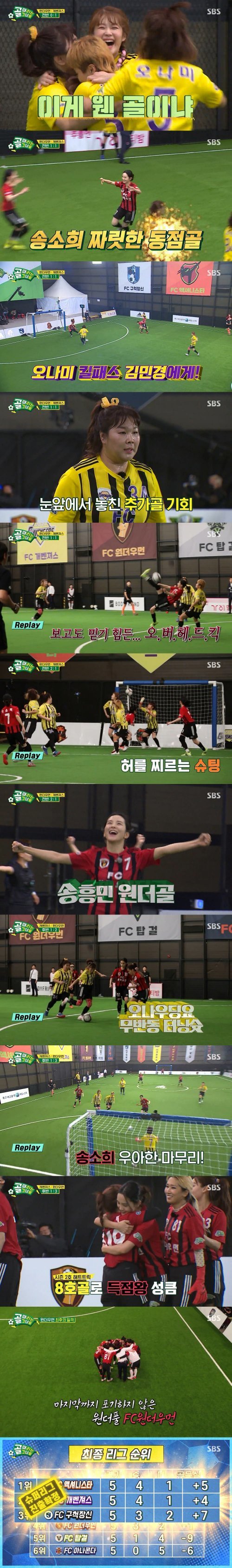 결국 ‘FC 원더우먼’의 3-1 승리로 경기는 종료됐다. 리그 최종 순위는 1위 ‘FC 액셔니스타’, 2위 ‘FC 개벤져스’, 3위 ‘FC 구척장신’, 4위 ‘FC 원더우먼’, 5위 ‘FC 탑걸’, 6위 ‘FC 아나콘다’로 상위 3팀이 슈퍼리그 진출권을 따냈다.