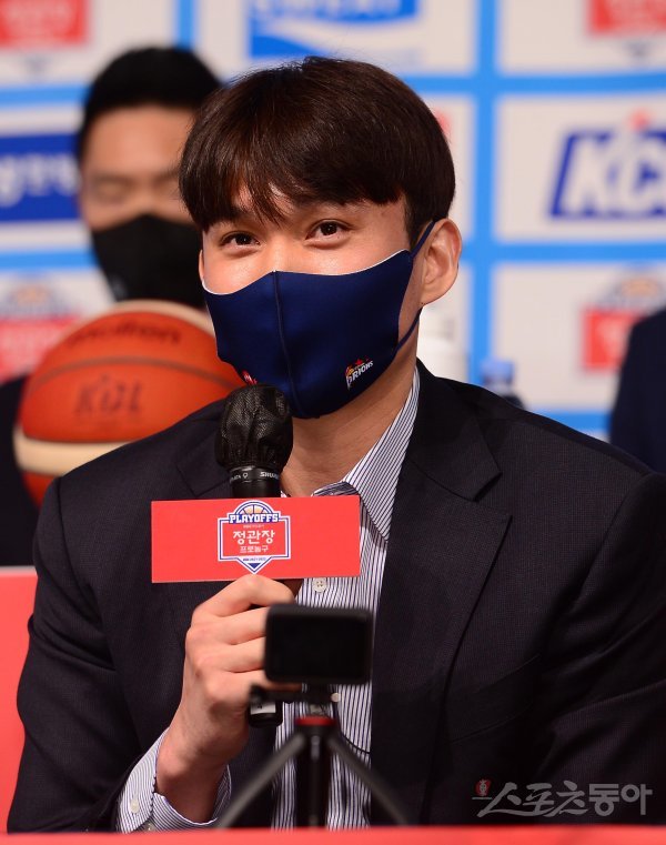 7일 서울 강남구 청담동 호텔리베라 청담에서 열린 ‘2021-2022 KGC인삼공사 정관장 프로농구’ 플레이오프 미디어데이에서 고양 오리온 이대성이 출사표를 말하고 있다.
