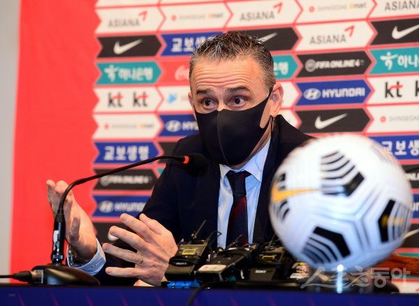 7일 경기도 파주 NFC(축구대표팀 트레이닝센터)에서 ‘2022 카타르월드컵’ 아시아 최종예선 결산 및 본선 조편성 관련 미디어데가 열렸다. 축구대표팀 벤투 감독이 질문에 답하고 있다.