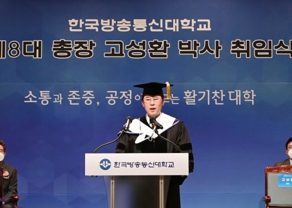 한국방송통신대(방송대)는 7일 서울 종로구 동숭동 방송대 디지털미디어센터에서 고성환 제8대 총장(60)의 취임식을 가졌다.‘먼저 온 미래 실현하는 대학’ 강조