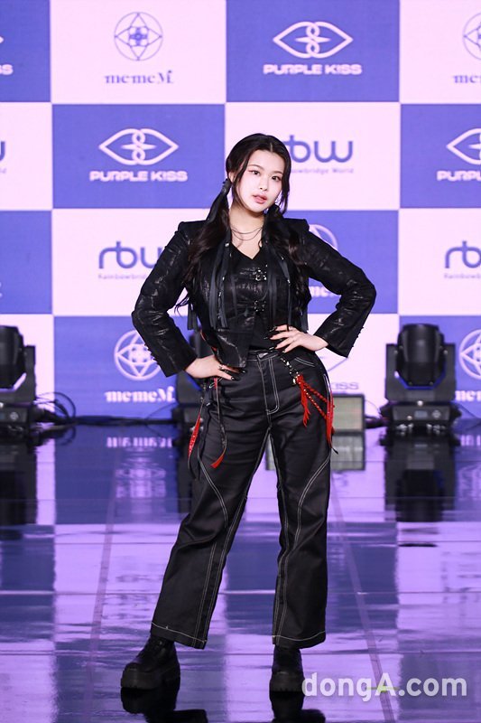그룹 퍼플키스(PURPLE KISS)가 6일 세 번째 미니앨범 ‘memeM’ 컴백 기념 쇼케이스에서 포즈를 취하고 있다.
