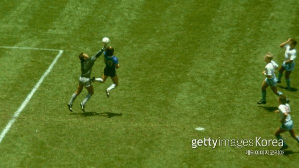 디에고 마라도나의 ‘신의 손’ 골 순간. 사진=게티이미지코리아.