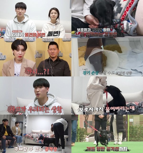 타니의 집착 행동을 막기 위해 목줄로 통제에 나서자, 타니는 아내 보호자를 물어 충격을 안긴다. 이를 본 강형욱은 “물건을 무는 건 래브라도 레트리버에게 흔한 일이지만, 이때 나타나는 공격성은 위험해 보인다”라고 우려하는 모습 보여 심각성을 더했다.
