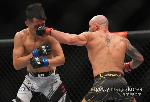 볼카노프스키에게 펀치 허용하는 정찬성. 사진=게티이미지코리아