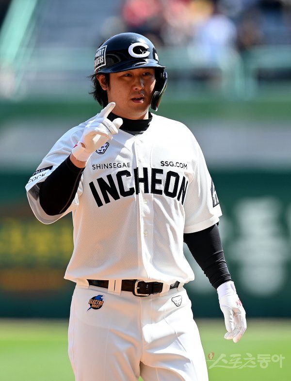 10일 인천 SSG 랜더스필드에서 ‘2022 신한은행 SOL KBO리그’ SSG 랜더스와 KIA 타이거즈의 경기가 열렸다. 3회말 무사 2루에서 SSG 최정이 1타점 적시타를 날린 뒤 세리머니를 펼치고 있다.