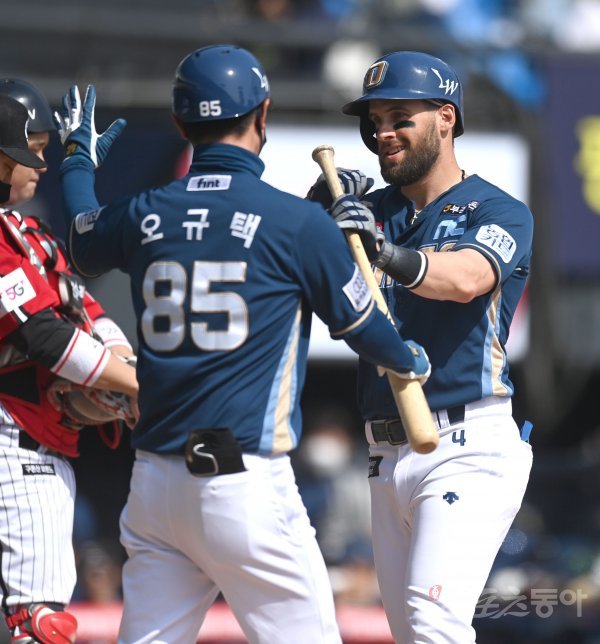 10일 서울 잠실야구장에서 ‘2022 신한은행 MY CAR KBO리그’ NC 다이노스와 LG 트윈스 경기가 열렸다. 3회초 무사 1,3루 NC 마티니가 역전 우월 스리런 홈런을 날리고 그리운드를 돌아 홈인하고 있다.