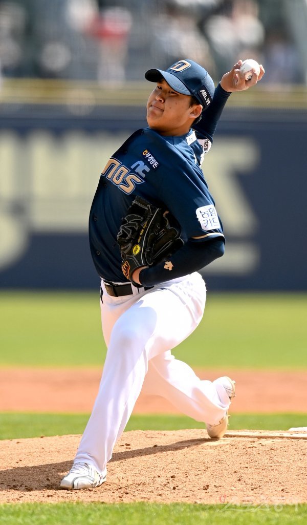 10일 서울 잠실야구장에서 ‘2022 신한은행 MY CAR KBO리그’ NC 다이노스와 LG 트윈스 경기가 열렸다. 선발 투수로 등판한 NC 신민혁이 역투하고 있다.