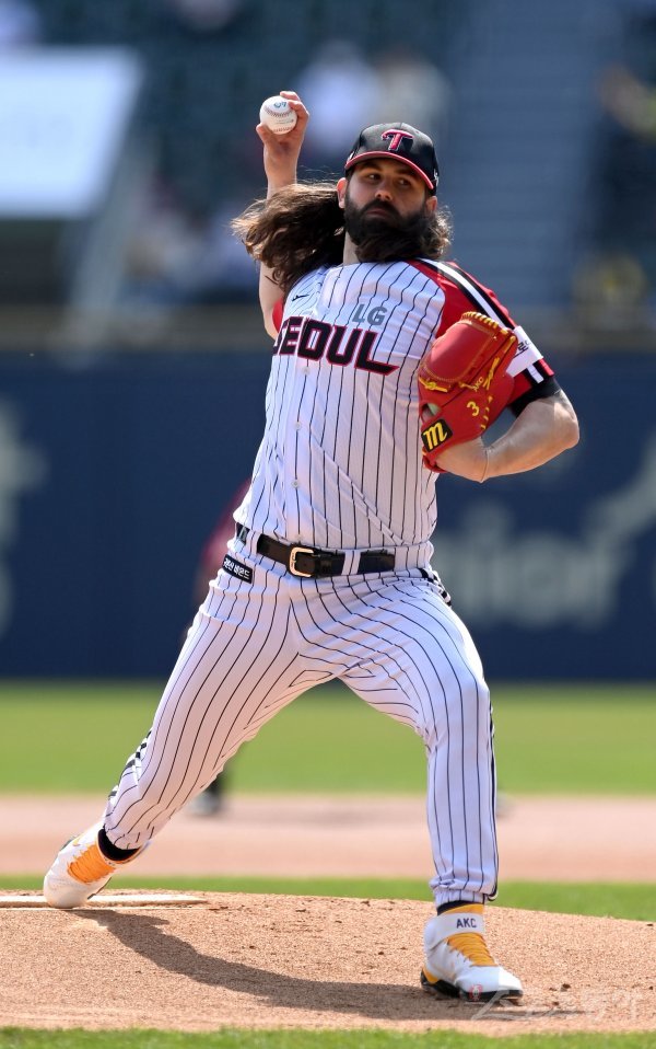 10일 서울 잠실야구장에서 ‘2022 신한은행 MY CAR KBO리그’ NC 다이노스와 LG 트윈스 경기가 열렸다. 선발 투수로 등판한 LG 켈리가 역투하고 있다.