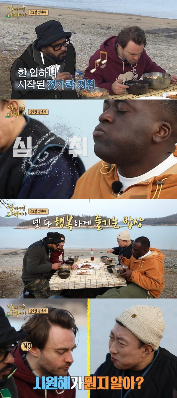 이어 네 사람은 산과 바다를 누비는 '내손내잡'을 보여줬다. 외국인 멤버들은 즉석에서 캔 자연산 칡과 굴을 시식할 때 상반된 반응을 보여 웃음을 자아냈다.