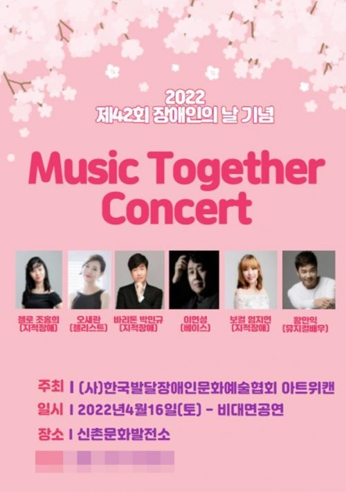 사단법인 한국발달장애인문화예술협회 아트위캔(대표: 왕소영)이 2022년 ‘장애인의 날’을 맞이하여 제42회 장애인의 날 기념 <장애인과 비장애인이 함께 하는 Music Together> 공연을 개최한다. 4월 16일 신촌문화발전소에서 열리며 비대면으로 진행된다.