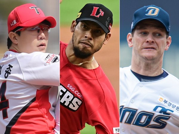 KIA 양현종, SSG 폰트, NC 루친스키(왼쪽부터). 사진 | 스포츠동아DB, KIA 타이거즈, NC 다이노스