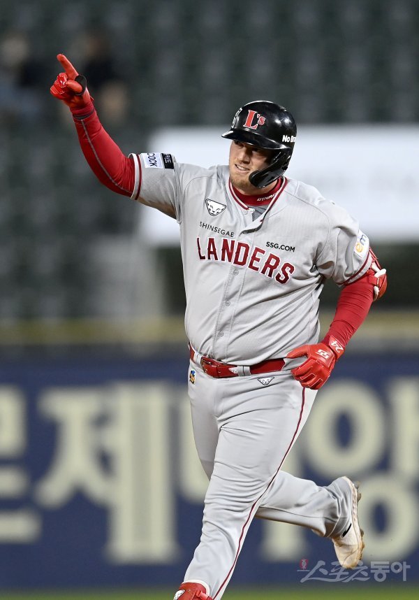 12일 서울 잠실야구장에서 ‘2022 신한은행 MY CAR KBO리그’ SSG 랜더스와 LG 트윈스 경기가 열렸다. 4회초 2사 1루 SSG 크론이 좌월 투런 홈런을 날리고 그라운드를 돌며 기뻐하고 있다.