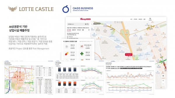 롯데건설은 오아시스비즈니스가 제공하는 지역별 상업용 부동산 시장 현황 빅데이터를 비롯해 AI를 활용한 상업용 부동산 적정 분양가, 상업 환경 가치 분석 보고서 등을 통해 고객 맞춤형 마케팅 전략을 수립할 예정이다. 보다 정확한 상가 시장 분석 자료를 통해 적정 분양가 산출과 사업 타당성 분석을 기대하고 있다.