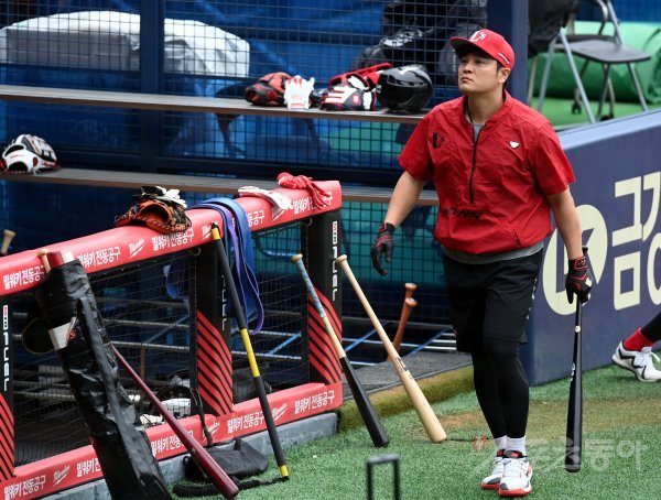 13일 서울 잠실야구장에서 ‘2022 신한은행 SOL KBO리그’ LG 트윈스와 SSG 랜더스의 경기가 열린다. 경기 전 SSG 추신수가 훈련을 준비하고 있다.
