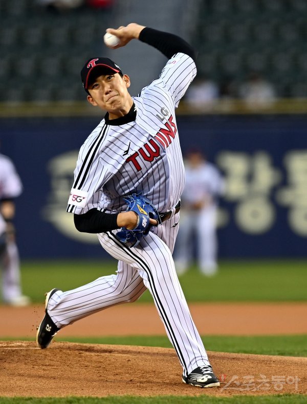 13일 서울 잠실야구장에서 ‘2022 신한은행 SOL KBO리그’ LG 트윈스와 SSG 랜더스의 경기가 열렸다. LG 선발투수 손주영이 힘차게 볼을 던지고 있다.