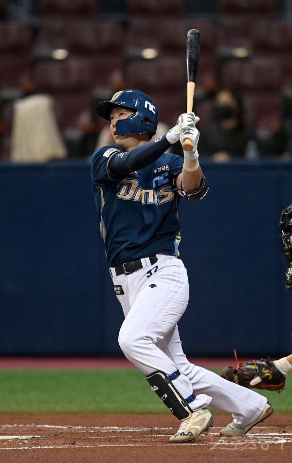 13일 서울 고척스카이돔에서 ‘2022 신한은행 MY CAR KBO리그’ NC 다이노스와 키움 히어로즈 경기가 열렸다. 1회초 무사 1,2루 NC 박건우가 좌월 스리런 홈런을 날리고 있다.