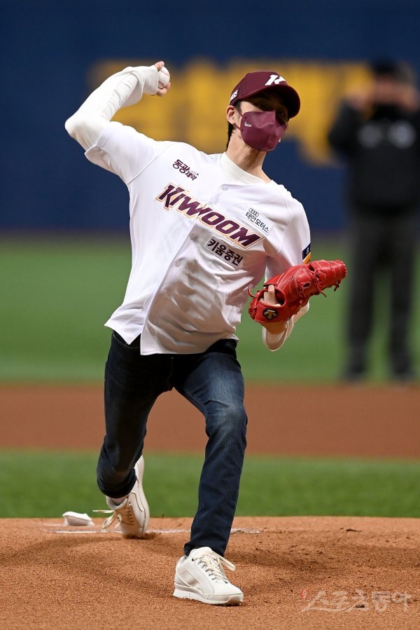 13일 서울 고척스카이돔에서 ‘2022 신한은행 MY CAR KBO리그’ NC 다이노스와 키움 히어로즈 경기가 열렸다. 경기 전 배우 유선호가 시구를 하고 있다.