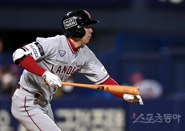 13일 서울 잠실야구장에서 ‘2022 신한은행 SOL KBO리그’ LG 트윈스와 SSG 랜더스의 경기가 열렸다. 9회초 2사 3루에서 SSG 박성한이 1타점 적시타를 날리고 있다.