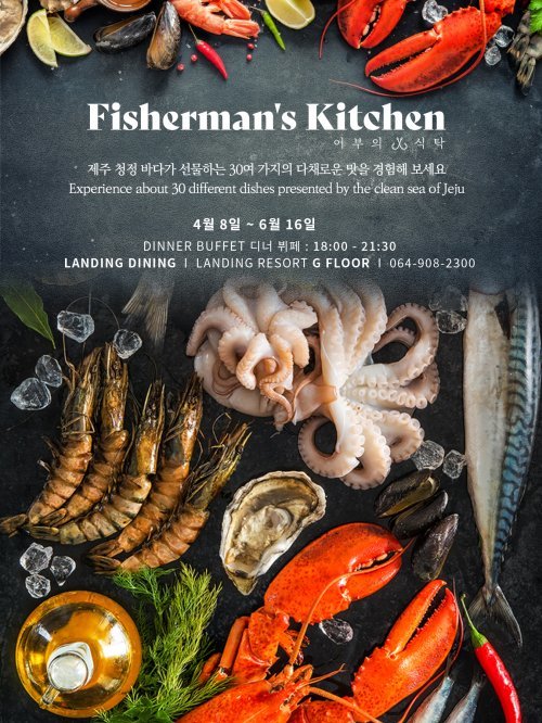 제주신화월드의 그랜드뷔페 ‘랜딩 다이닝’에서 진행하며 참돔, 도다리, 숭어, 제주 볼락, 달고기 등 제주 앞바다에서 잡히는 어종을 망라한 해산물 30여 종을 신선한 상태로 즐길 수 있다. 직접 손질한 활어를 회로 제공하는 ‘오늘의 생선’을 비롯해 봄철 별미로 알려진 제주 볼락으로 만든 찜 요리, 달고기 깐풍기 및 피쉬앤칩스, 허브 버터에 가볍게 구워 풍미와 식감을 극대화한 돌문어 구이 등을 셰프들이 현장에서 즉석 요리를 선보이는 라이브 스테이션에서 제공한다.