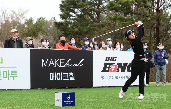 14일 경기도 여주 페럼클럽에서 열린 KLPGA ‘메디힐-한국일보 챔피언십’ 5번홀에서 갤러리들이 코로나 19로 제한된 입장이 허용되어 김세영의 티샷을 지켜보고 있다.
