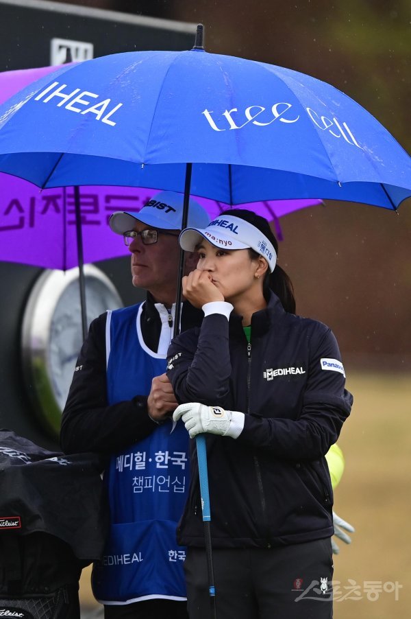 14일 경기도 여주 페럼클럽에서 열린 KLPGA ‘메디힐-한국일보 챔피언십’ 10번홀에서 유소연이 티샷을 기다리며 생각에 잠겨 있다.