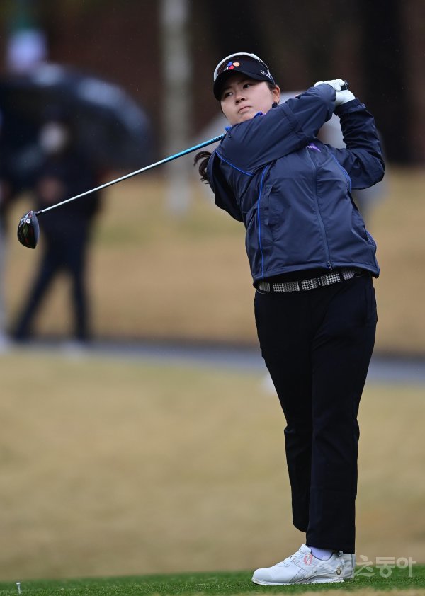 14일 경기도 여주 페럼클럽에서 열린 KLPGA ‘메디힐-한국일보 챔피언십’ 10번홀에서 홍정민이 티샷을 날리고 있다.