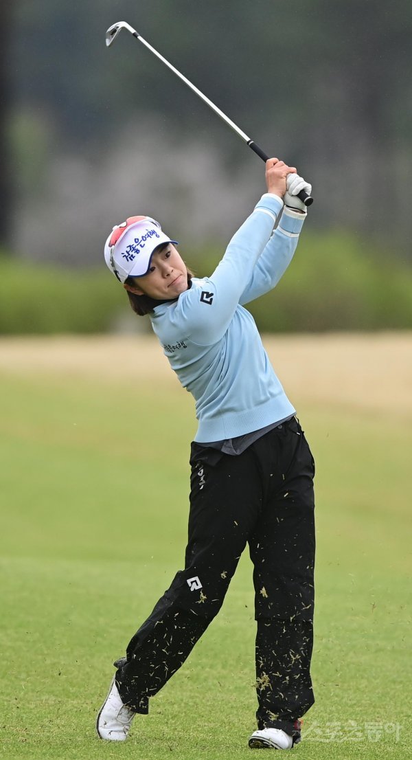 14일 경기도 여주 페럼클럽에서 열린 KLPGA ‘메디힐-한국일보 챔피언십’ 11번홀에서 이기쁨이 어프로치 샷을 날리고 있다.