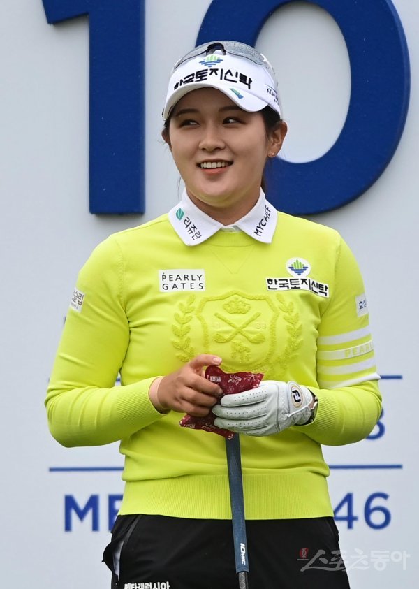 14일 경기도 여주 페럼클럽에서 열린 KLPGA ‘메디힐-한국일보 챔피언십’ 10번홀에서 박현경이 핫팩을 쥐고 있다.