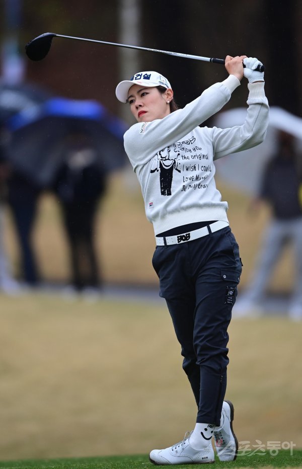 14일 경기도 여주 페럼클럽에서 열린 KLPGA ‘메디힐-한국일보 챔피언십’ 10번홀에서 박주영이 티샷을 날리고 있다.