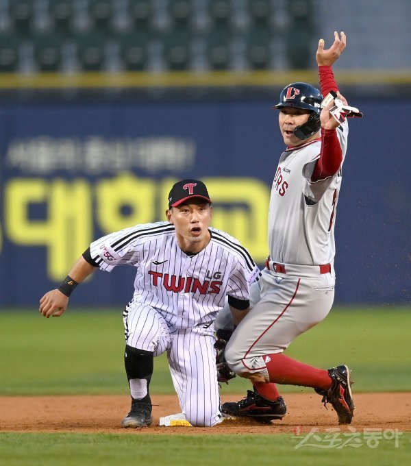 14일 서울 잠실야구장에서 ‘2022 신한은행 MY CAR KBO리그’ SSG 랜더스와 LG 트윈스 경기가 열렸다. 2회초 2사 1루 상황에서 SSG 1루주자 이재원이 2루 도루에 성공하고 있다.