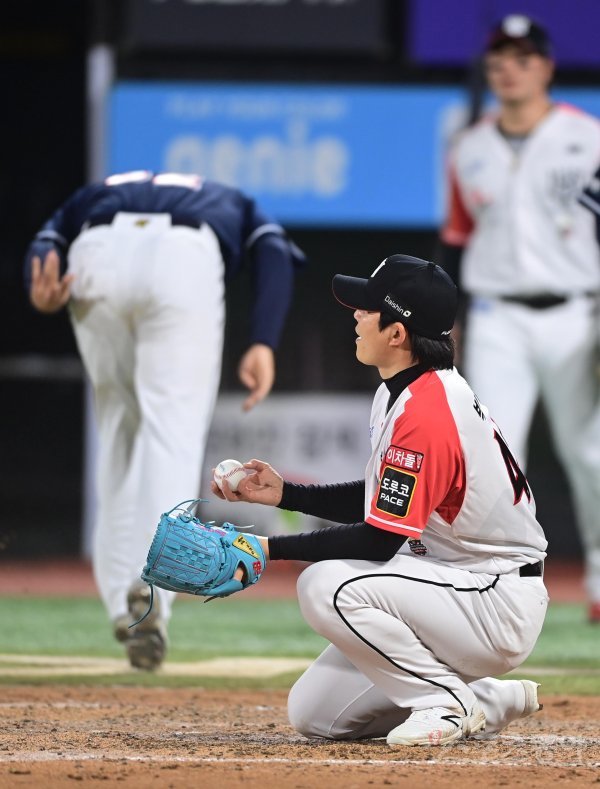 14일 경기도 수원KT위즈파크에서 열린 ‘2022 신한은행 SOL KBO리그’ KT 위즈와 두산 베어스의 경기에서 연장 10회초 만루 상황에서 실점한 KT 박시영이 아쉬워하고 있다.