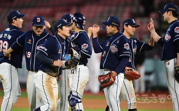 살얼음판 같던 승부는 7회부터 요동치기 시작했다. 잠잠하던 두산은 7회초 2사 1·2루서 박세혁의 적시타로 1-1 균형을 맞췄고, 후속타자 정수빈이 2타점 3루타를 터트리며 분위기를 띄웠다. 두산은 김인태가 1타점을 보태며 쐐기를 박는 듯했다.
