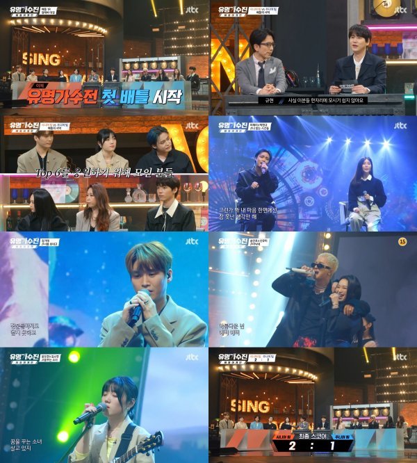 지난 15일 오후 방송된 ‘유명가수전-배틀어게인’(이하 ‘유명가수전2’) 1회에서는 ‘싱어게인2’의 주역이었던 TOP6 김기태, 김소연, 윤성, 박현규, 이주혁, 신유미가 김이나, 윤도현, 이해리, 선미, 송민호와 팀을 이루어 컬래버 무대로 ‘배틀’을 펼쳤다. 시니어 팀장 유희열은 김이나, 윤도현, 이해리와 김기태, 김소연, 박현규를 서포트 했고 주니어 팀장 규현은 선미, 송민호와 윤성, 이주혁, 신유미를 지원 사격하며 의리를 과시, 첫 번째 대결의 승리는 시니어 팀이 가져가며 다음을 향한 여정에 더욱 불을 지폈다.