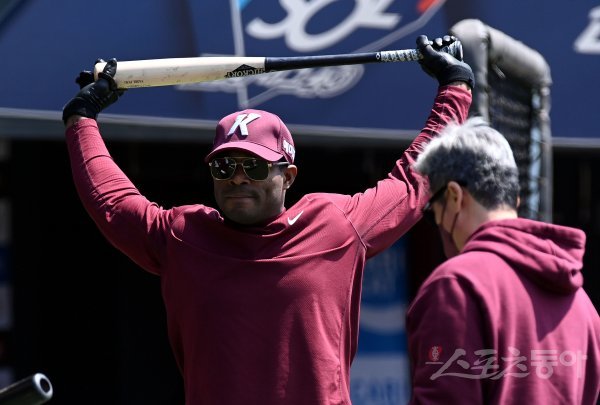 17일 서울 잠실야구장에서 ‘2022 신한은행 SOL KBO리그’ 두산 베어스와 키움 히어로즈의 경기가 열린다. 경기에 앞서 키움 푸이그가 훈련을 펼치고 있다.