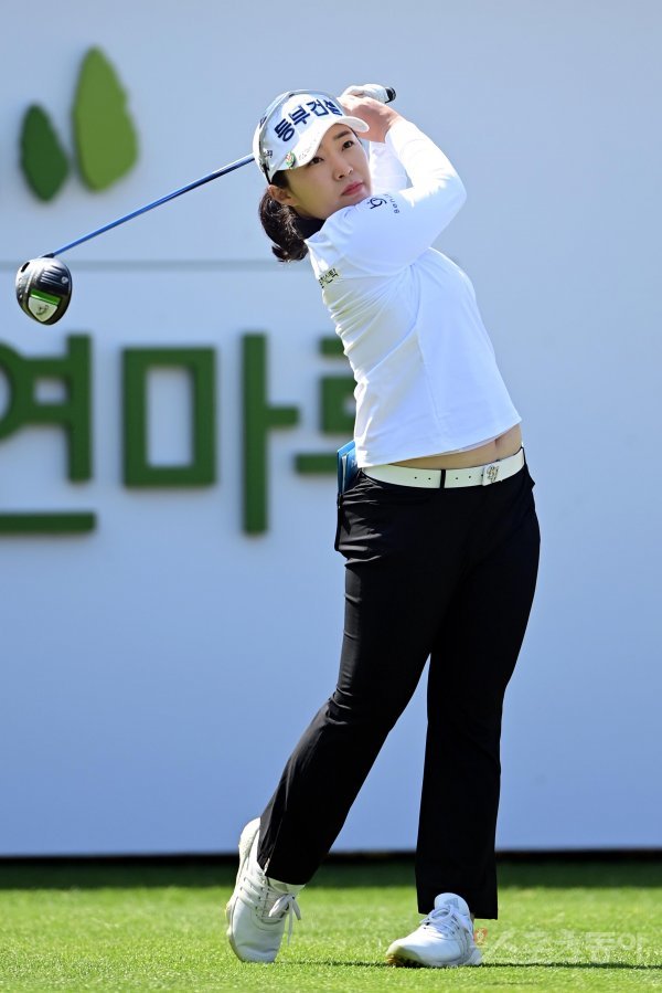 17일 경기도 여주 페럼클럽에서 열린 2022 KLPGA 투어 ‘메디힐-한국일보 챔피언십’ 파이널 라운드 1번홀에서 김수지가 티샷을 날리고 있다.