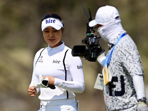 17일 경기도 여주 페럼클럽에서 열린 2022 KLPGA 투어 ‘메디힐-한국일보 챔피언십’ 파이널 라운드 4번홀에서 윤이나가 아이언샷을 날린 후 방송 카메라를 바라보고 있다.