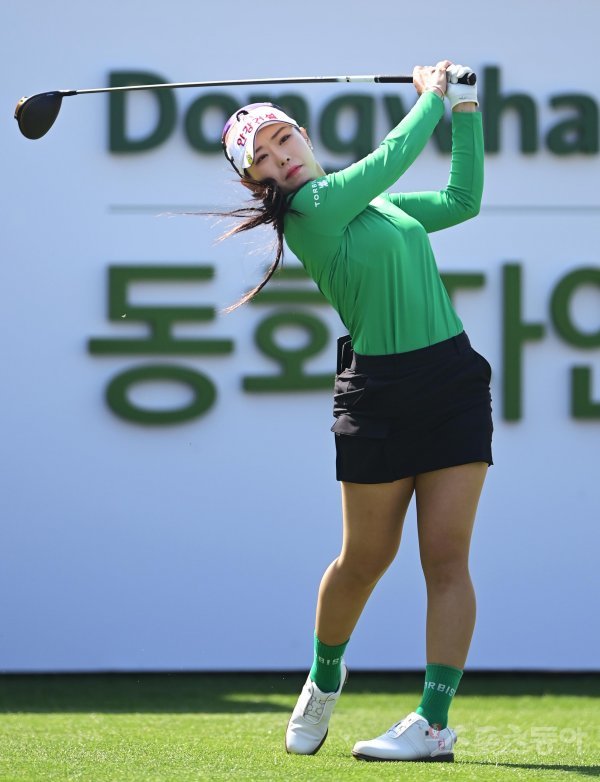 17일 경기도 여주 페럼클럽에서 열린 2022 KLPGA 투어 ‘메디힐-한국일보 챔피언십’ 파이널 라운드 1번홀에서 이채은2가 티샷을 날리고 있다.