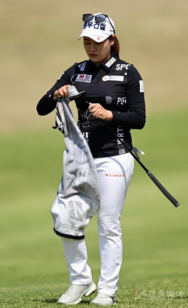 17일 경기도 여주 페럼클럽에서 열린 2022 KLPGA 투어 ‘메디힐-한국일보 챔피언십’ 파이널 라운드 4번홀에서 지한솔이 퍼터를 닥고 있다.