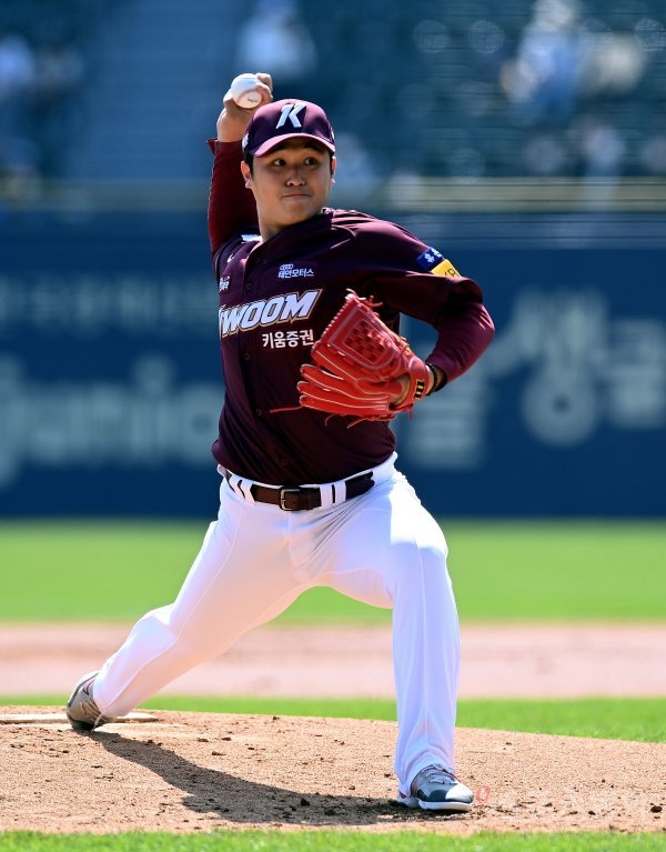 17일 서울 잠실야구장에서 ‘2022 신한은행 SOL KBO리그’ 두산 베어스와 키움 히어로즈의 경기가 열렸다. 키움 선발투수 최원태가 힘차게 볼을 던지고 있다.