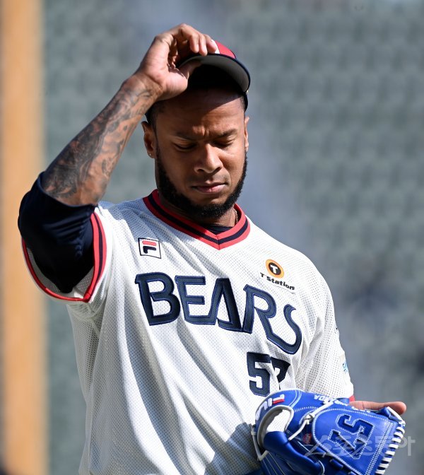 17일 서울 잠실야구장에서 ‘2022 신한은행 SOL KBO리그’ 두산 베어스와 키움 히어로즈의 경기가 열렸다. 4회초 실점을 허용한 두산 선발 미란다가 이닝 종료 후 더그아웃으로 향하고 있다.