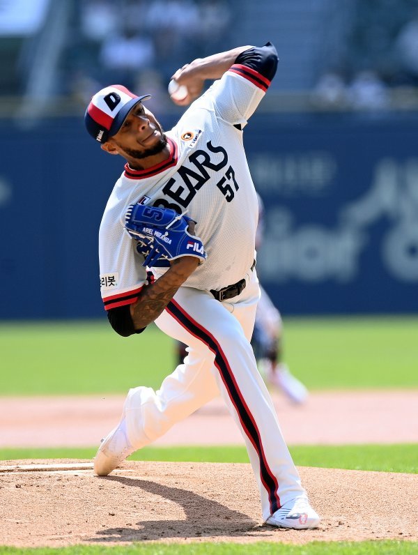 17일 서울 잠실야구장에서 ‘2022 신한은행 SOL KBO리그’ 두산 베어스와 키움 히어로즈의 경기가 열렸다. 두산 선발투수 미란다가 힘차게 볼을 던지고 있다.