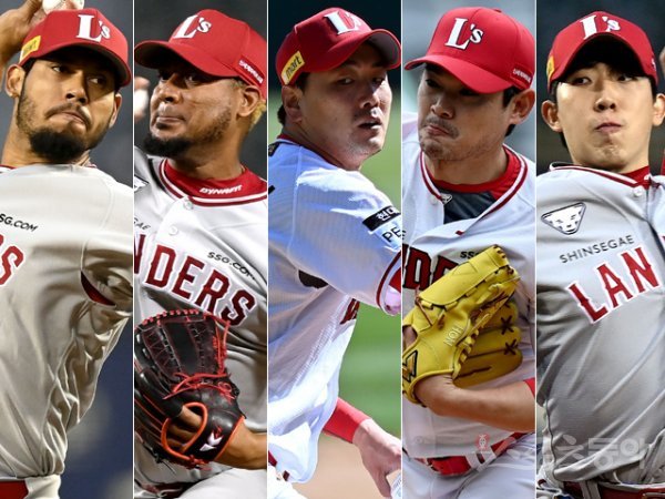 SSG 폰트, 노바, 김광현, 노경은, 오원석(왼쪽부터). 스포츠동아DB