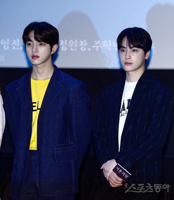 18일 오후 서울 강남구 코엑스 메가박스에서 열린 ‘서울괴담’ 언론시사회에 참석한 봉재현과 주학년이 무대 인사를 하고 있다.