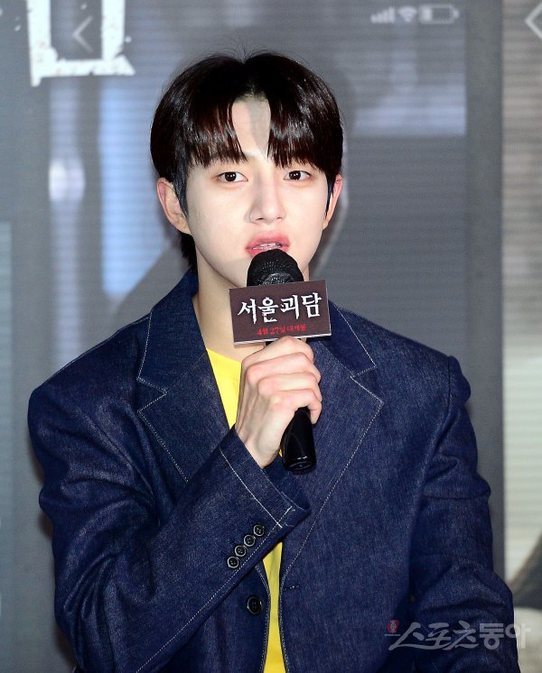 18일 오후 서울 강남구 코엑스 메가박스에서 열린 ‘서울괴담’ 언론시사회에 참석한 봉재현이 출연 소감을 밝히고 있다.