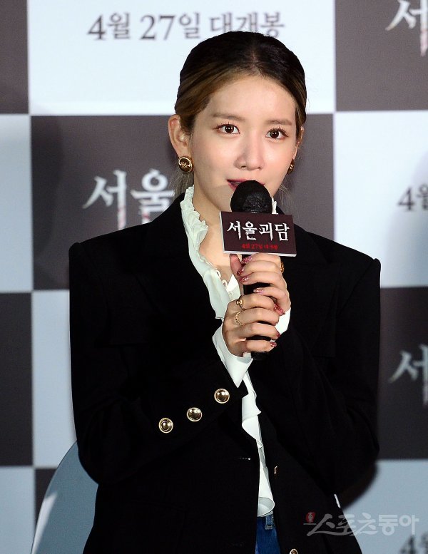 18일 오후 서울 강남구 코엑스 메가박스에서 열린 ‘서울괴담’ 언론시사회에 참석한 우주소녀 엑시가 출연 소감을 밝히고 있다.